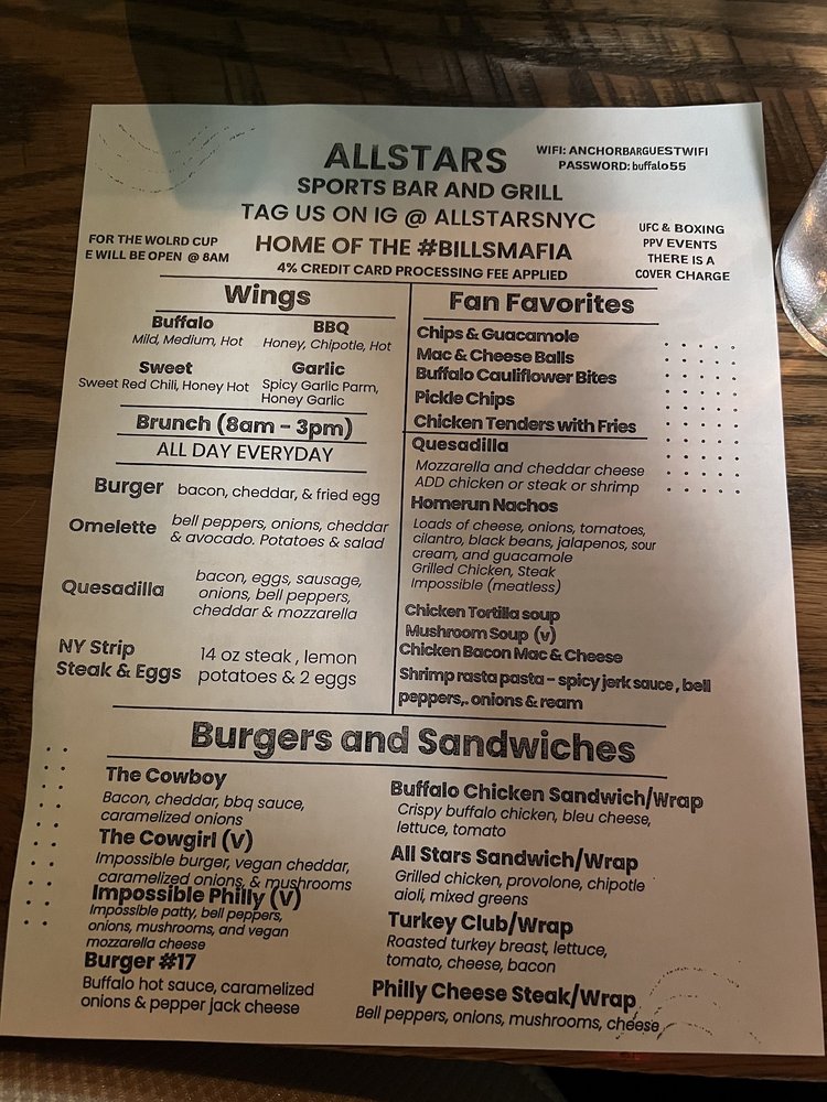 Welcome to All Stars Sports Bar & Grill, an exciting destination for chicken wing lovers and sports enthusiasts alike, located at 327 W 57th St, New York. This casual, vibrant eatery combines the thrill of watching games with delicious food, catering to all tastes and dietary needs, including a variety of vegetarian and vegan options.